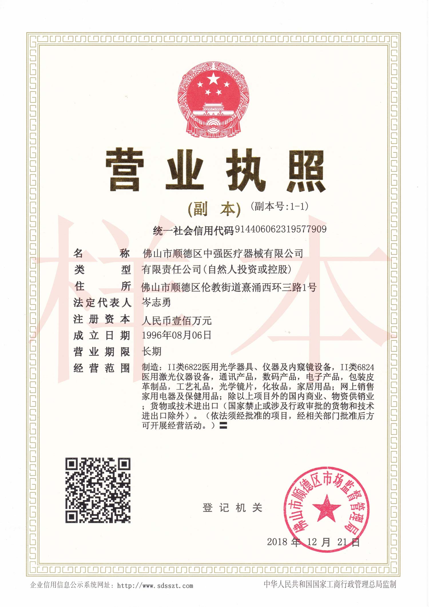 創立于1994年的佛山市順德區中強醫療器械有限公司是廣東省民營科技企業,是專門從事研制無創、非藥物光子微循環灌注診療設備的企業。與廣東省針灸學會激光針灸專業委員會和廣東省中醫藥學會亞健康專業委員會、廣東省醫學形態學專業委員會以及眾多醫院長期合作,開展產、學、研科研課題和省科技成果轉化啟動項目的研究,以科研成果和臨床應用研究升級、推動產品的應用和健康管理。